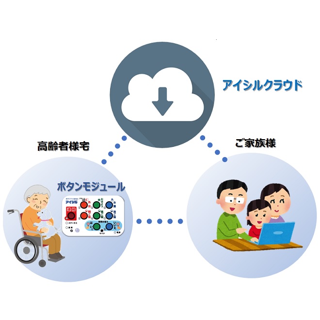 『見守りプラスアイシル』は見守り機能に認知機能低下の早期の気づき支援機能を搭載した高齢者支援システムです。 センサを用いた24時間365日の見守り機能に加えて、押しボタンを用いた認知機能低下の早期の気づき支援機能を搭載し、高齢者ご自身や家族は認知機能の変化の状況を簡単に把握することができます。