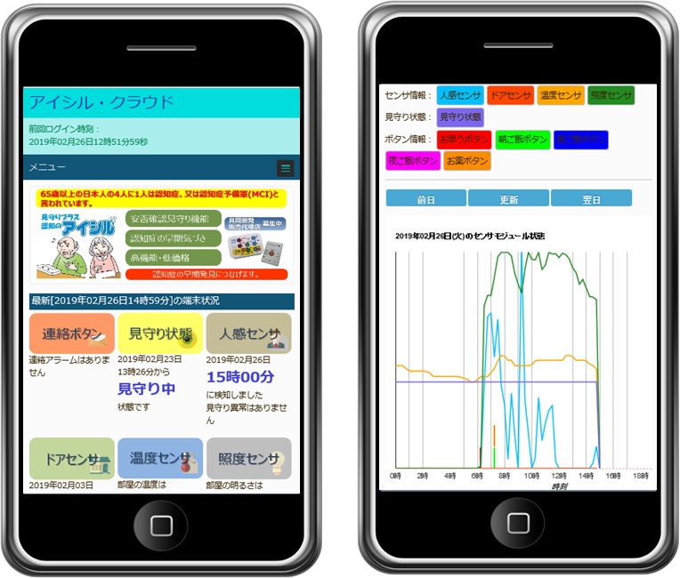 クラウドアクセスはWebブラウザでアクセスします。 個人の認証は、ユーザIDとパスワードで管理されます。 クラウドログイン後の画面では現在の状況が一目で判るデザインになっています。