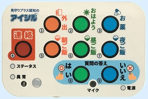 朝起きた時、お薬を服用時、食事を取った時といったタイミングでアイシルの押しボタンを日常の決まり事として押して頂きます。