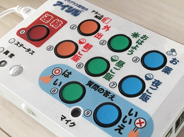 アイシルが採用する認知機能低下の早期の気づきの方法は、日々のボタン操作と各種センサによる生活リズムをモニタし、過去のデータと比較することで認知機能の変化を検出するものです。