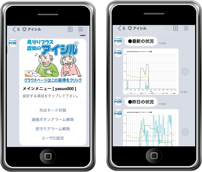 一日一回の状況通知や緊急時の連絡をLINEで受け取ることができます。 普段使い慣れたLINEの画面で状況を確認することができます。