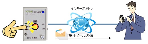 本体の連絡ボタンを押すことで登録先された連絡先にメールを送信することができます。